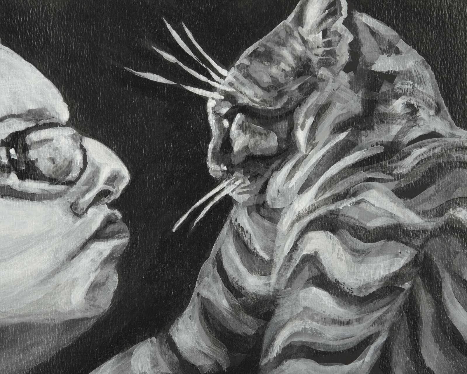Cat Boo Pica, 2015, (Dog Studies, Cats), acrylic on canvas, 10” x 12”, Elizabeth Lisa Petrulis. Strawberry & Gilbert, 2022, acrylic on board, 11 x 14”, Elizabeth Lisa Petrulis, (Commissioned for the collection of the Smith-Brown Family, Massachusetts) Mafdet stardust 2, 2024, acrylic on canvas, 24” x 36”, Elizabeth Lisa Petrulis Boo Legs, 2015, (Dog Studies, Cats), acrylic on canvas, 14” x 8”, Elizabeth Lisa Petrulis, (Private Collection, Terre Haute, IN). Neo, 2022, acrylic on canvas, 10” x 8”, Elizabeth Lisa Petrulis (Commissioned for the collection of John Dodd, Maine) Gathering (Mafdet stardust) 2024, acrylic on canvas, 24” x 24”, Elizabeth Lisa Petrulis Boo Head in Hand, 2015, (Dog Studies, Cats), acrylic on canvas, 9” x 12”, Elizabeth Lisa Petrulis, (Private Collection, Orangeburg, SC). Me and the Rascal II (Family Portrait Series), 2017, acrylic on paper, 8" x 10", Elizabeth Lisa Petrulis “Constellation,” 2022, acrylic paint pens on paper, @48” square, Elizabeth Lisa Petrulis Cosmic Kit Boy, 2023, acrylic on board, 14 x 11, Elizabeth Lisa Petrulis the Woman and the Rascal (self portrait with Boo), 2016, acrylic on canvas, 10 x 8”, Elizabeth Lisa Petrulis, (Ahern Collection, Clearwater, Florida). Whiskers, 2018, acrylic paint pens on paper, 14" x 11", Elizabeth Lisa Petrulis. Hug (Family Portraits), 2017, acrylic on canvas, 20" x 16", Elizabeth Lisa Petrulis. Self Portrait with Boo in Profile (Family Portraits), 2016, acrylic on paper, 10" x 8", Elizabeth Lisa Petrulis. Candy & Cat, 2018, acrylic paint pens on paper, 11" x 14", Elizabeth Lisa Petrulis. Swirl (cat whiskers), 2021, acrylic on rag board, 9" x 6", Elizabeth Lisa Petrulis, (Private Collection) Ahern Black Cat 1 two, 2018, acrylic paint pens on paper, 11" x 14", Elizabeth Lisa Petrulis. Warm Collar (Family Portraits), 2017, acrylic on canvas, 16" x 20", Elizabeth Lisa Petrulis. Cat Shadows, 2013 reworked 2014, Dog Studies, Original Series, black acrylic on canvas, 24" x 36", Elizabeth Lisa Petrulis Ahern Black Cat 2, 2018, acrylic paint pens on paper, 14" x 11", Elizabeth Lisa Petrulis. Extended Paw (limbs 2), 2018, acrylic on canvas, 6" x 8", Elizabeth Lisa Petrulis Absorbed, 2020 re 2021, black & white acrylic on canvas, 16” x 36”, Elizabeth Lisa Petrulis. Akimbo (limbs 2), 2018, acrylic on canvas, 6" x 8", Elizabeth Lisa Petrulis Strife, 2013, Dog Studies, Original Series, black acrylic on paper 12 x 9", Elizabeth Lisa Petrulis (Private Collection, Springport, IN) Sniff, 2021, acrylic on rag board, 12" x 9”, Elizabeth Lisa Petrulis Siamese cat, 2021, acrylic on board, aprox. 6" x 6”, Elizabeth Lisa Petrulis, (Private Collection Florida) Cat Pile Up, 2019,black and white acrylic on canvas, 20” x 14”, Elizabeth Lisa Petrulis, (Commissioned for Collection of Brian Bunnett, Terre Haute, Indiana). Melvin, 2019, black and white acrylic on canvas, 6" x 6", Elizabeth Lisa Petrulis, (Private Collection South Carolina) Fluffy cat (grooming), 2021, acrylic on rag board, 12" x 9”, Elizabeth Lisa Petrulis Cat with white ruff, 2021, acrylic on rag board, 9" x 6”, Elizabeth Lisa Petrulis, (Private Collection)
