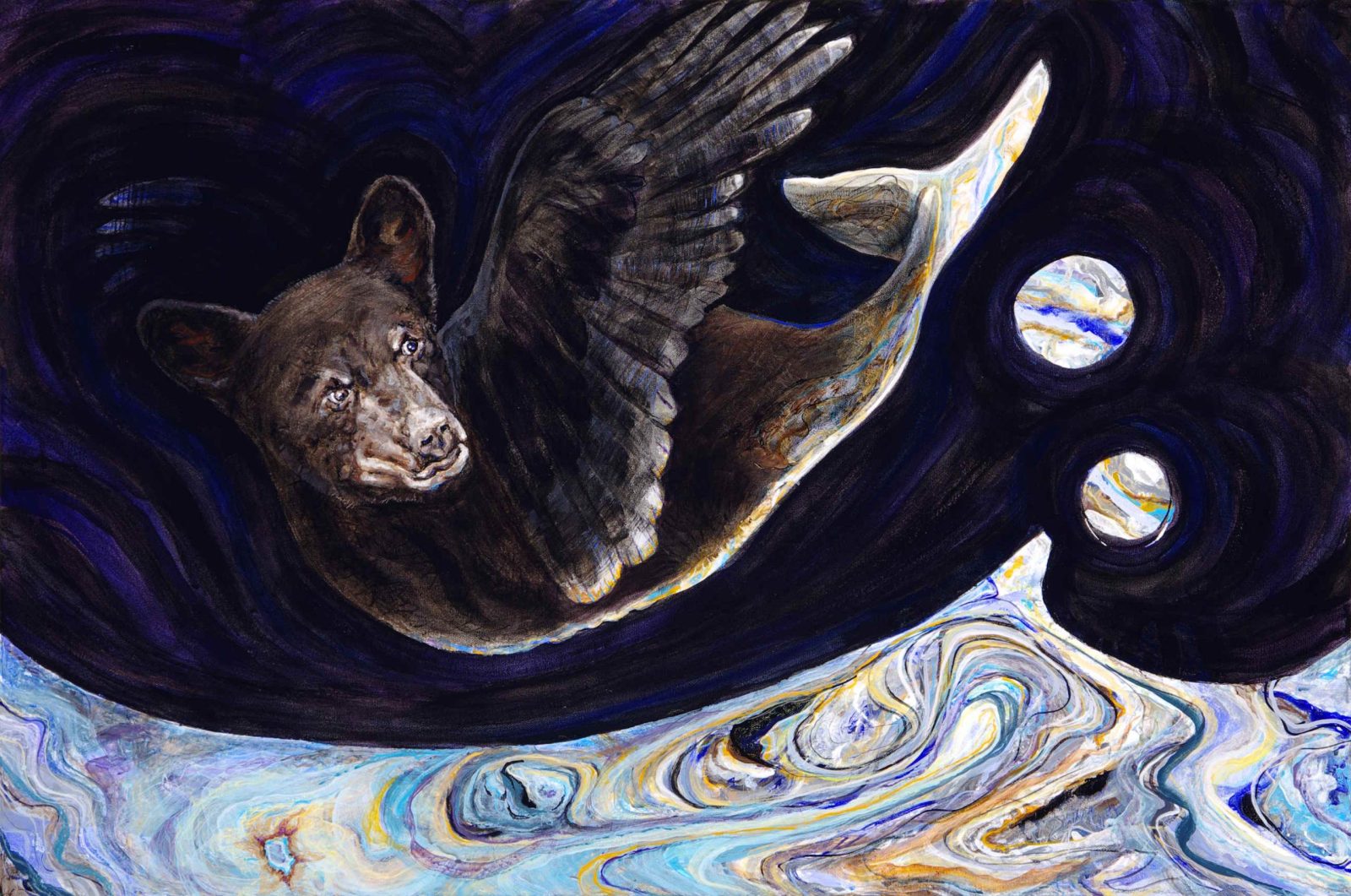 Using contemporary acrylic paints, while harking back to ancient Greek mythology, these visions portend a dystopian future.